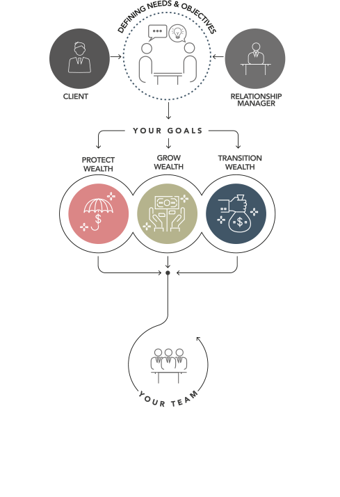 From asset management and M&A advice through to day-to-day banking and complex wealth structuring, we can provide solutions to help you achieve your goals. Whether your priority is to use your assets to grow your wealth, protect it or somewhere in between, your Relationship Manager will work with you to achieve your own individual goals.